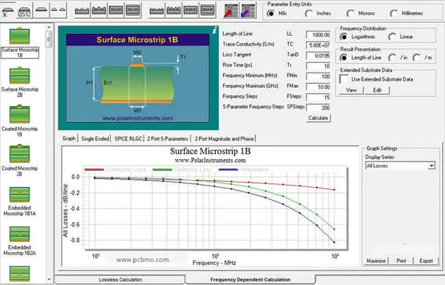 A widely adopted impedance modeling application in the PCB sector is Polar Instruments' Si8000 Field Solver. This advanced tool utilizes a boundary element method for electromagnetic simulation. It offers multiple predefined impedance structures, allowing engineers to derive results by choosing the appropriate template and entering parameters like trace width, spacing, dielectric thickness, copper weight, and dielectric constant.