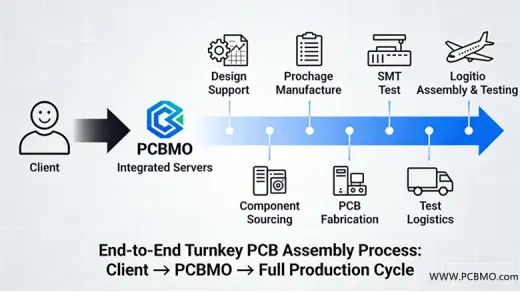 What Is Turnkey PCB Assembly? A Complete OverviewIn the fast-paced electronics manufacturing industry, turnkey PCB assembly has become the preferred solution for businesses seeking efficiency, cost control, and simplified project management. Unlike partial assembly services or consignment models, turnkey PCB assembly refers to a one-stop solution where a single manufacturer—like PCBMO—manages the entire PCB production process from start to finish. From design review and component sourcing to final assembly, testing, packaging, and logistics, clients only need to provide their design files (Gerber files, BOM, assembly data) and specifications, while the manufacturer handles all other complexities. This all-inclusive approach eliminates the need for clients to coordinate with multiple vendors, reducing communication gaps, production delays, and quality risks. For startups, SMEs, and large enterprises alike, turnkey PCB assembly allows teams to focus on core competencies such as product innovation and market expansion. At PCBMO, we further elevate this model by integrating three core commitments: premium quality, on-time delivery, and cost-effective pricing—addressing the most critical pain points of global electronics manufacturers. The Step-by-Step Turnkey PCB Assembly Process at PCBMOAt PCBMO, our turnkey PCB assembly process is structured to ensure transparency, quality, and efficiency at every stage. We adhere to international standards and leverage advanced technology to deliver consistent, reliable results while optimizing costs and timelines.