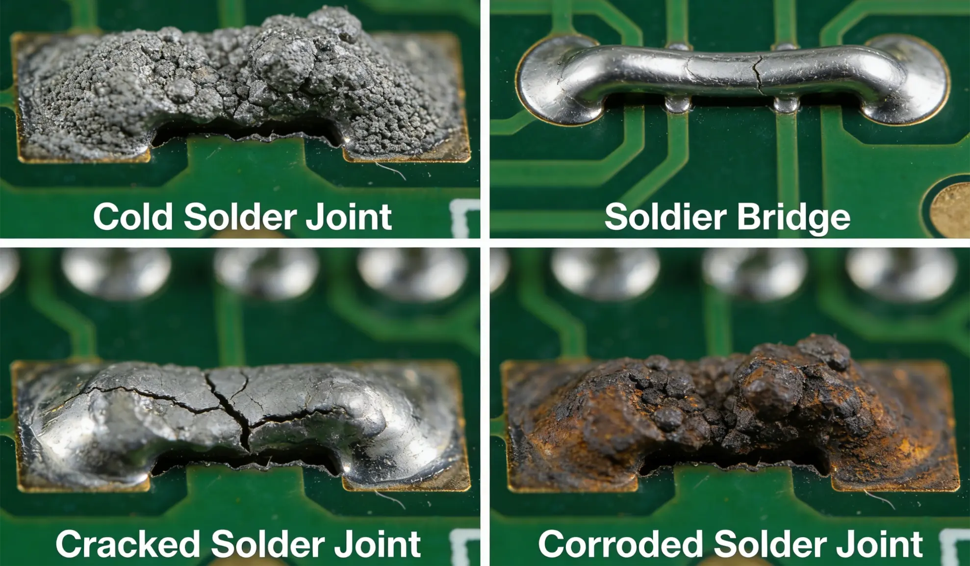 · Poor Soldering Technique: Insufficient solder coverage, cold solder joints (due to inadequate heat), or solder bridging (excess solder connecting adjacent pads) can lead to electrical discontinuity or short circuits.