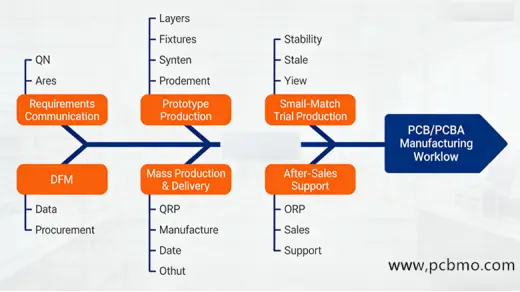 Based on the stringent requirements of core customers such as Huawei, PCBMO has built a full-process service system covering "demand communication → DFM analysis → prototype production → small-batch trial production → mass production delivery → after-sales maintenance" , with clear and controllable delivery cycles for each link: